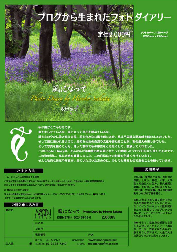 この数年間に、私は大病を経験しました。この日記はその影響を色濃くうけています。そんな私的な日記や写真が、見ていただいた方の心に、少しでも残るものであることを願っています。